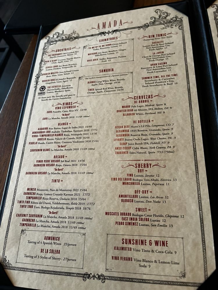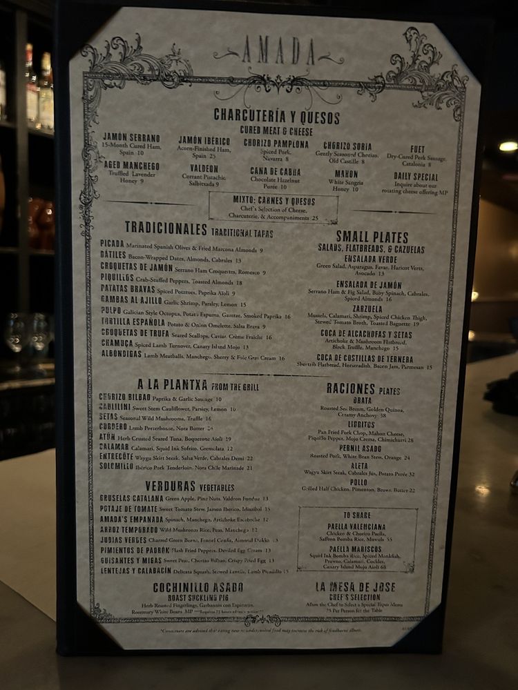 Introducing the menu at Amada, a popular Iberian tapas bar in Philadelphia, known for its trendy ambiance and diverse menu options. From traditional Spanish tortillas to unique brunch offerings like omelets with serrano ham and lemon ricotta pancakes, Amada caters to a variety of tastes. Customer reviews rave about the flavorful tapas, with dishes like shrimp, scallops, and garlic potatoes standing out. While some mention higher prices, others emphasize the quality and taste of every dish. The extensive menu includes Pescatarian and vegan options, making it a great choice for groups with different dietary preferences. With a full bar, happy hour specials, and outdoor seating, Amada promises a memorable dining experience for those looking to explore authentic Spanish flavors in a vibrant setting.